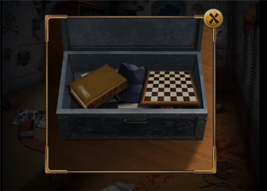 装进去以后会发现出现五色眼睛,按照顺序应该是红,黄,紫,黑,深青,这个就是需要在地上的密码箱使用的,箱子有点脏多点两下就擦干净了,点开后会发现有一箱子道具(多说两句,除了帽子,鼻烟壶,福尔摩斯探案集这些,还有棋盘,想想资料,谁十岁下棋呢,并且这个人分裂症,也就是多重人格,东西锁在一起,说明侦探和亨利是一个人所以某些玩家进行到这里应该已经知道了一些东西)