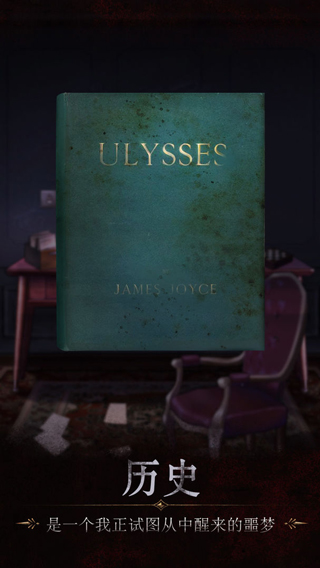 3、根据剧情提示,向左移动,在书架上找到《尤利西斯》这本书。