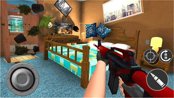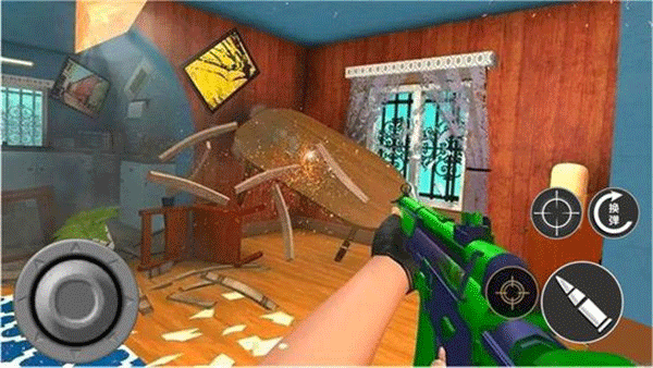 3、在游戏中玩家将来到一间房屋,你需要使用手中的工具去破坏屋内的家具