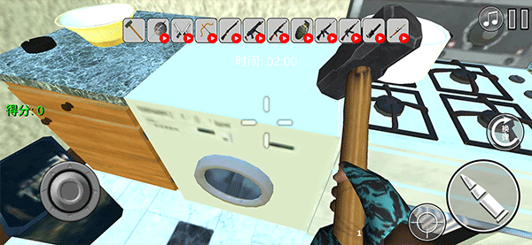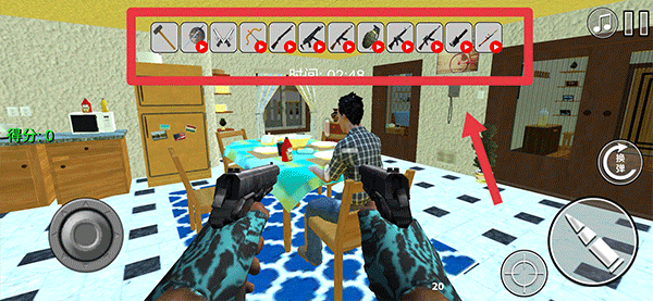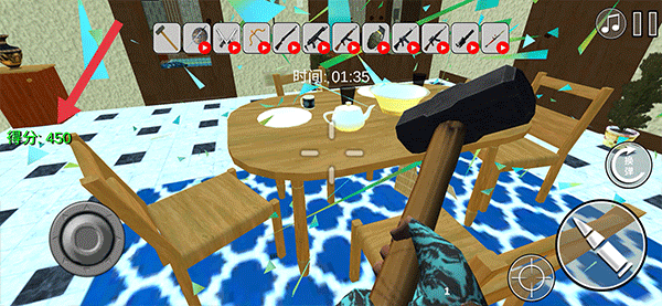 6、游戏界面中的最上方还提供了很多武器可以切换使用哦,使用其他武器可以帮助玩家更快的破坏物品哦