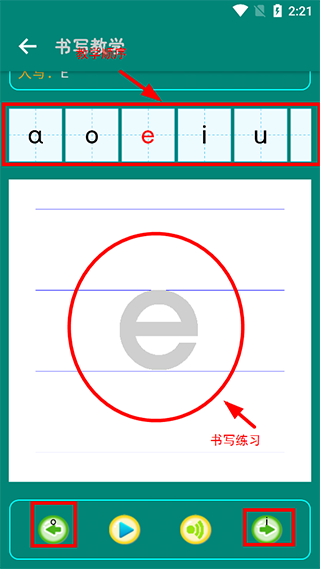6、拼音笔画演示、拼音描红。动态演示如何写拼音,教你正确书写拼音。