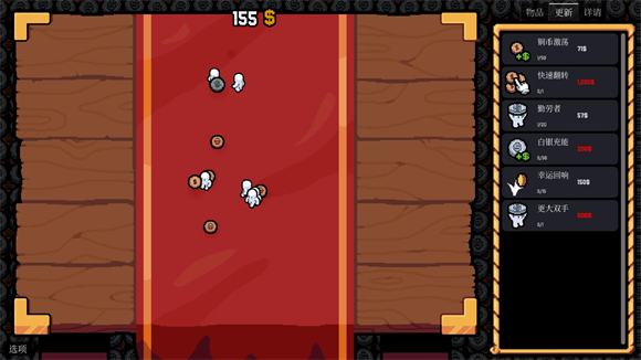 游戏里还有飞升机制,舍弃财富换取更强的能力,听起来挺有挑战性的。而且每次投掷硬币都有随机性,正反面会影响结果,这种不确定性让游戏更有乐趣和惊喜感。