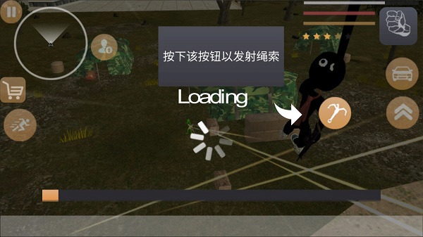 3、点击“钩索”,可以在城市的大楼间进行穿梭,这可比一般的交通工具快多了,而且不受交通管制。