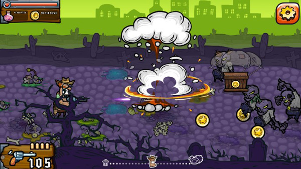 - 用你可靠的6射手射击那些愚蠢的僵尸并收集硬币。