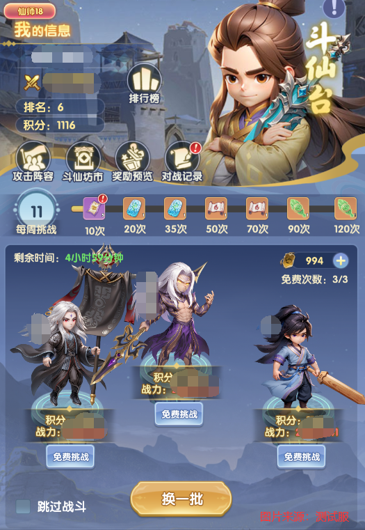 3、每天可免费挑战3次,可消耗仙玉购买额外次数。
