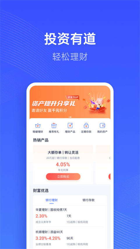 9、理财:精选理财产品,随时变现,高年化收益。