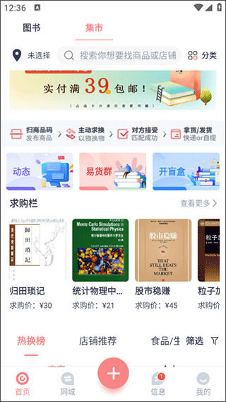 同时软件还让有书的人就近交换,着力打造出一个“一公里书友圈”,让你换书更方便。另外软件简单易用,用户只需把闲置书籍扫码发布到平台上,不必定价,系统自动匹配有需求的各方,然后就近见面取书或者寄快递,并且书读完之后还可“一键转让”,再次换给需要的人,如此周而复始,书尽其用,成为名符其实的“换享经济”,有需要的小伙伴们就来本站下载使用吧。