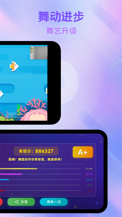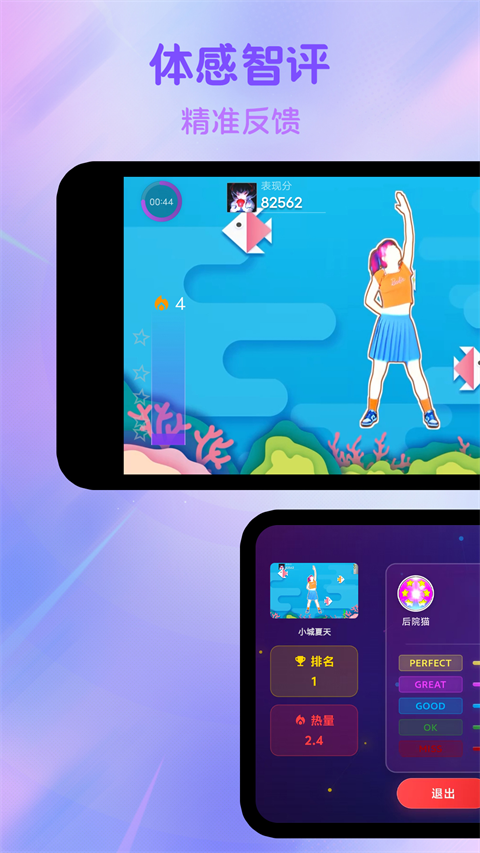 1、AI评分系统:精准捕捉用户舞蹈动作,实时评分,提升舞蹈乐趣。