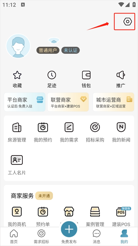 1、用户进入app界面之后选择“我的”,在该界面选择“设置”按钮。
