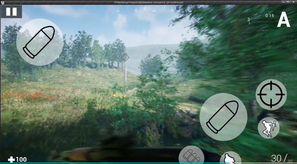4、游戏内如图,左边控制移动,右边控制瞄准射击;