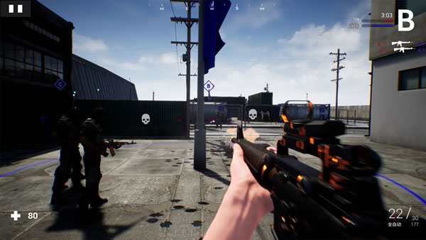 3、操作很简单,左手是方向轮盘,右手是射击瞄准和动作按键;