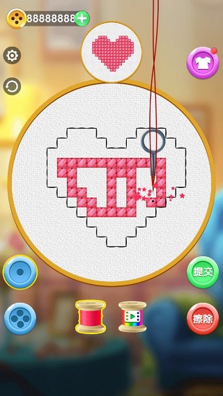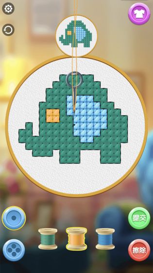 游戏中,我们会在闯关模式中,遇到各种图案,没有色彩点缀的图案,通过操作绣针,选择不同的颜色的线圈,选择不同方式的穿针引线,来使得无趣的图案生动起来,让它涂满颜色,给以勃勃生机和生命力。