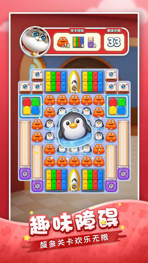 - 可爱小企鹅:你没看错,海岛也有小企鹅!消除企鹅脚下的障碍棋子,让它们回到水中尽情畅游~