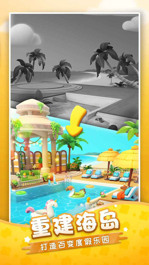 假日岛必玩榜——爽到停不下来的解压三消!轻松合成满屏强力道具,火箭、炸弹、陀螺和彩球,一键触发超炫酷特效&动画!保持连胜即可获得开局道具奖励,策略组合威力翻倍,一步引爆打开棋盘!巧用心得:火箭、炸弹、陀螺相互组合,即可精准消除任意位置的障碍,又可提大幅升消除效率;终极王炸组合:彩球x彩球,瞬间清扫全盘障碍!轻松上手,脆爽十足,惊喜不断,为家人们奉上丝滑的消除体验!