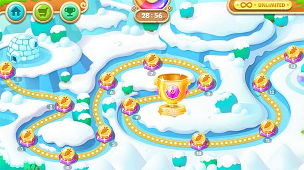 在关卡上会设置有雪地,丛林,冰河,天际,冰岛等几个主题,共有135个关卡,而且其模式应该还会与保卫萝卜一样。