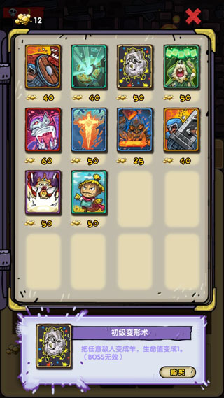 攻略方面,合理存卡是关键。建议收集近战、远程和群攻卡各几张,根据战斗情况灵活运用。特殊技能如“变羊”或“裁决”也能在关键时刻发挥作用。整体来看,游戏难度适中,金币获取也足够,不用担心资源问题。