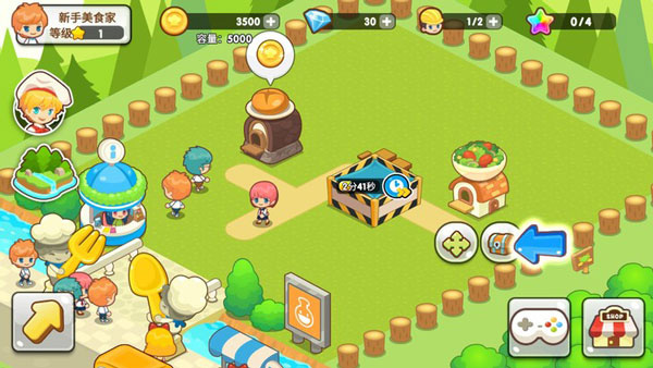 先来看一下游戏的具体玩法:要想实现盈利,首先就需要完成各类美食屋的建立,包括面包店、汤屋、沙拉店和烤肉店等等。除了这些美食屋以外,还需要建立一些座椅供顾客使用,当座椅数不足时,就会有顾客因生气而走掉,这可是非常影响收益的哟。另外,一定的装饰物,例如花丛、树木等等能够为整个餐馆带来格外的魅力值,吸引更多的顾客前来消费。