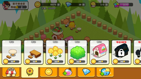 每一个建筑被建造完毕后并没有结束,还可以通过使用道具来增加其收入和魅力值以及金币的容量。道具可以通过点击美食屋中的宝箱购买到,不同的道具作用效果和能力都不同,还可以不断地解锁新的道具。另外,在左下角的萌妹子处还能够进行餐馆的扩充操作以及扩充美食促销展窗口操作。
