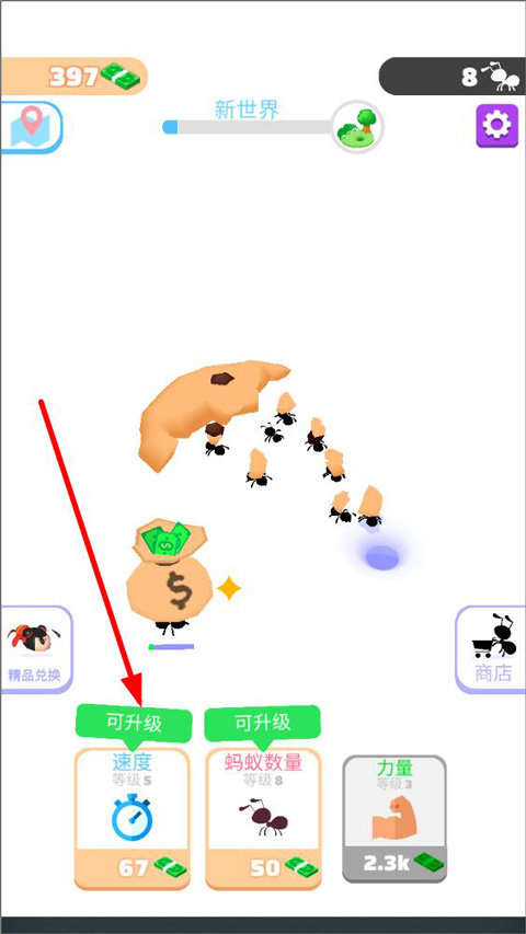 4、在商店页面中,玩家可以利用游戏赚到的钱购买小蚂蚁特工;