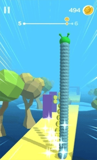 毛毛虫奇遇记是一款休闲跑酷风的手机闯关游戏,这款游戏采用了卡通3D设计风格,小巧清新,且拥有的游戏关卡也众多。而在游戏中玩家需要控制毛毛虫在赛道上冲刺,同时还要在途中及时的吃掉苹果来帮助毛毛虫的身体变得更长,这样才能挑战更高的障碍物,而且到达终点时毛毛虫的身体越长,获得的金币也会越多。