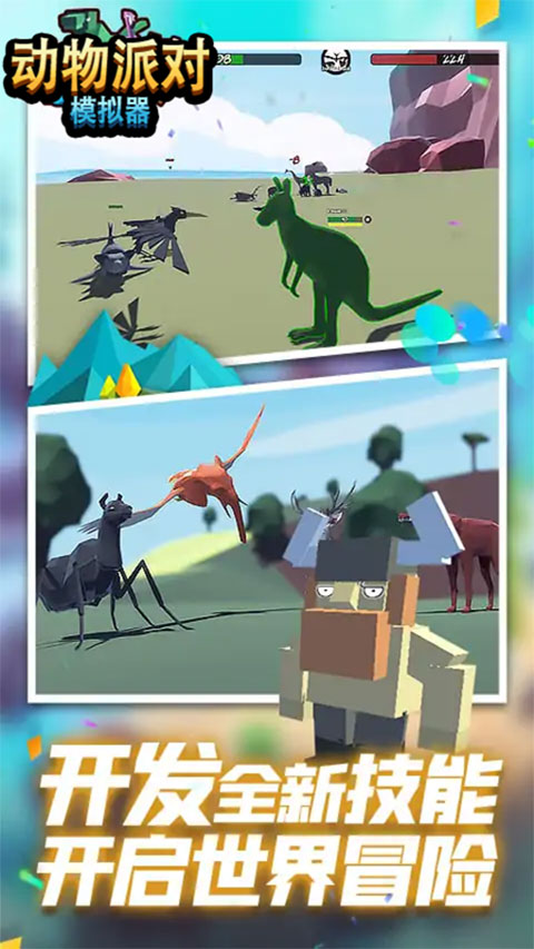 动物派对模拟器手机版是一款动作格斗类游戏,采用了3D画面,里面的动物十分真实,不同的动物角色有着不同的战斗方式,从而能够带给玩家们不同的战斗体验。在游戏中,玩家可以选择一个自己喜欢的动物,然后控制自己的动物与其他的动物展开一场竞技比赛,你的目标就是打败所有的其他动物,用尽一切手段来干翻对手。