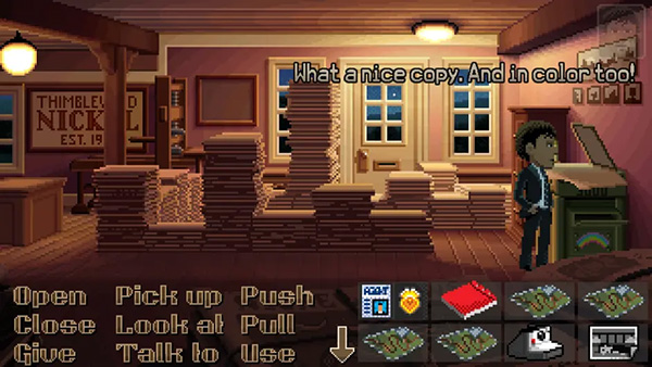 银莲公园手机版是一款全新的像素风格解谜探险游戏,英文名为《Thimbleweed Park》。游戏背景设定在一个神秘的小镇,发生了一起谋杀案,玩家需要通过切换五个怪咖角色,探索隐藏在小镇背后的秘密。游戏采用传统的点击式操作,玩家可以通过收集证据、对话互动来推进剧情。