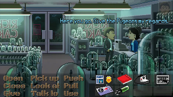 进入餐厅右边的B大街,进入Ricki's Cake商店,与店主交谈,I want some tubes 选择wc67号管,返回交给鸽子兄弟。他们会给你一张名片。