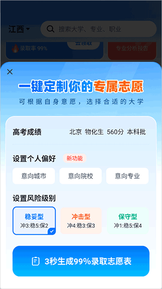 提供基于高考分数的模拟填报,供考生参考,考生仍需自行选择适合的志愿