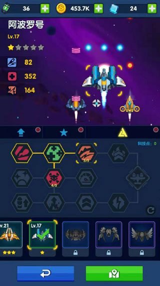 3、不断通过关卡来获得奖励强化你的战机,让你的战机获得更好的性能