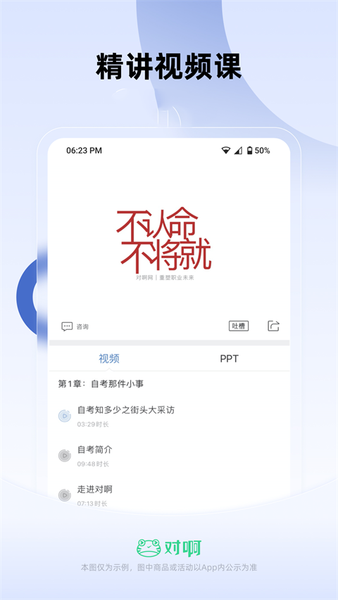 “对啊自考随身学”是一款由成都随身学教育科技有限公司开发的手机自学APP,专为在职人群设计,提供便捷的学习方式和丰富的课程资源。用户可以根据自己的职业技能需求选择学习科目,在手机上随时随地进行学习,无需等待上课时间。