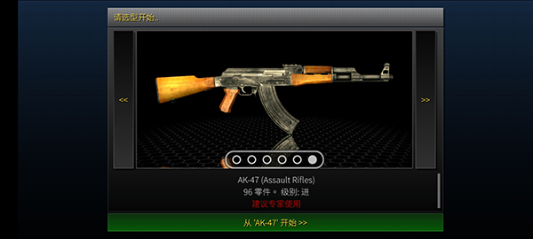 3、初次进入游戏可能需要链接服务器较长的时间,我们需要耐心等待,链接服务器成功后进入新手环节,我们可选择一款枪械作为游戏的初始道具,点击确定后可进入拆卸检修模式