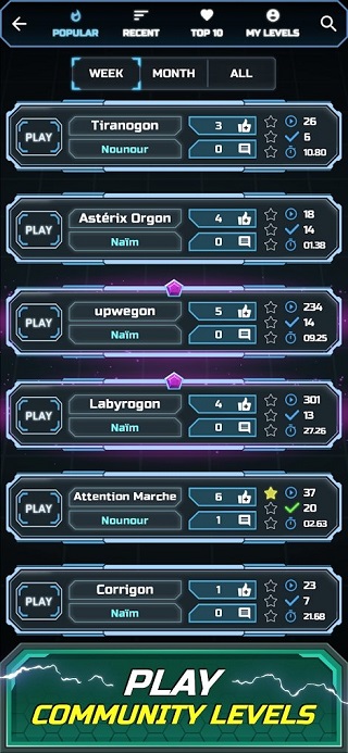 6、播放世界各地玩家创造的惊人挑战,并浏览热门,近期作品和特色挑战。
