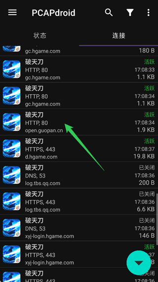 不难发现,这些连接会标注是哪些APP进程产生,并显示目的域名、协议、端口,以及连接状态等基本信息。