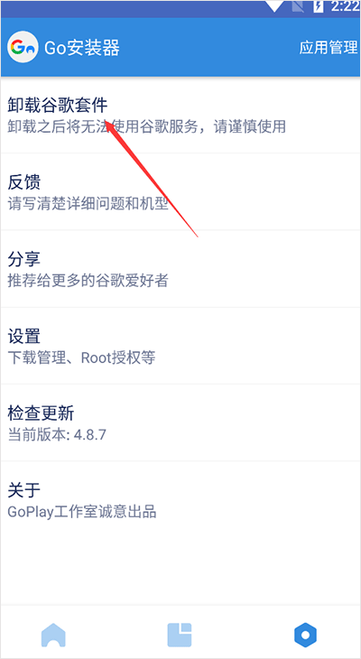 2、然后在功能栏里面会有“卸载谷歌套件”的选项。