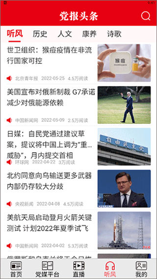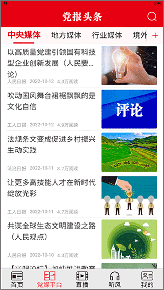 app里有很多党建相关的资源,内容涵盖了中央、地方以及境外的新闻,信息量很大。操作也很简单,打开就能看到头条新闻,还有直播和听风平台,可以看热点事件解读和历史人文等内容。特别是“爆料”功能挺有意思的,用户可以互动交流,分享身边有趣的事情。