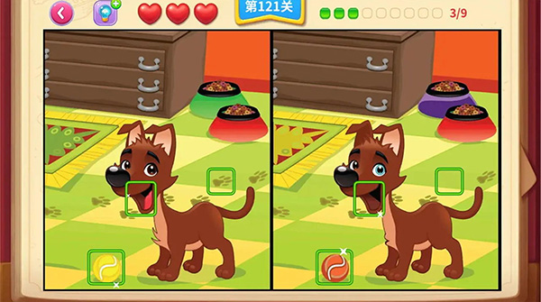 一起看图找不同是一款非常有趣的找不同游戏,该游戏为卡通动画风格,丰富的关卡内容,操作简单挑战性高。每一个关卡都是不一样的图片,在两张相似的图片中,发动你的火眼金睛找出哪里不同,游戏没有时间的设置,玩家可以慢慢的找到不同,也可以追求速度,有爱心的设定,找错一处就会减少一颗爱心,每关有三颗爱心对应最后的评分,大家可以在又快又稳的基础上,尽可能三星通关,这就非常考验观察能力和眼力了,带给玩家十分刺激的挑战,感兴趣的小伙伴可以来下载游戏体验吧!
