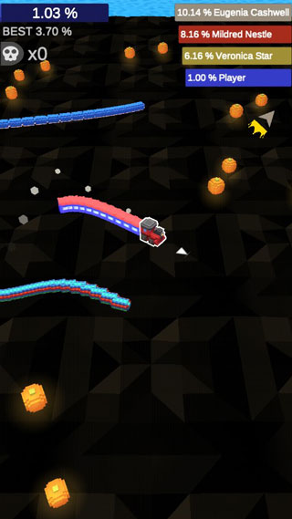 2、要注意自己的蛇头碰到其他贪吃蛇的身体就会死亡喔,并且会产生大量小圆点。