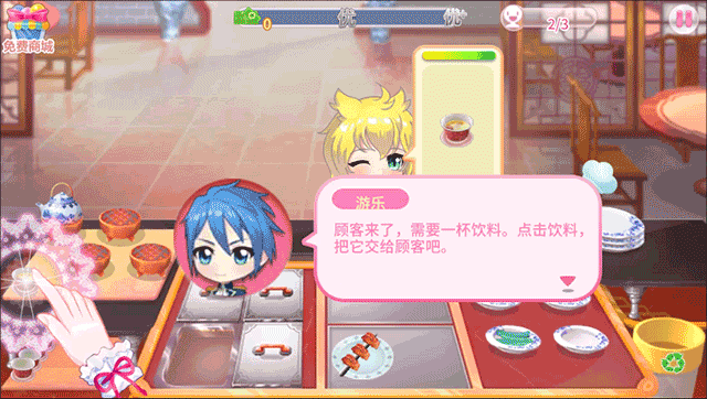 5、进入实际游戏中根据顾客的需求点击饮料;