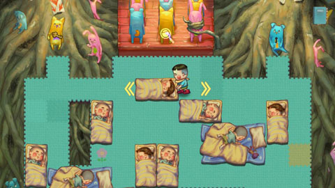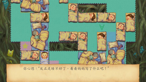 首先出现在大家面前就是在一个幼儿园中,凭借与其中一个小朋友的交谈,通过类似于推箱子的玩法将错综复杂的被子移动,从左上角获得钥匙,然后在右上角找到出口。