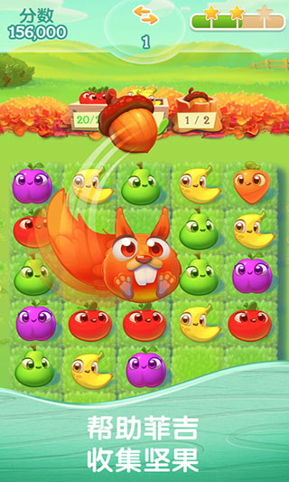 农场超级传奇手机版是一款非常不错的休闲消除手游,英文名叫Farm Heroes Super Saga,游戏界面采用了竖版2D画面呈现,整个农场和农作物都带着萌萌哒卡通风,颜色也非常清新可爱,特别是蔬菜水果们的大眼睛真的超级Q萌。在玩法上,游戏采用了非常经典的三消换位操作方式,玩家们手指按住屏幕中的蔬菜,通过与旁边的蔬菜进行切换位置,若有三个或以上相同蔬菜排列在一起的时候,则可以消除了。如果四个或四个以上在一起消除还会产生神奇变异,获得加成高的积分奖励。