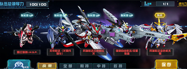 搭配思路:一种较为新颖的机体阵容搭配方式,选择将神敢达/明镜止水放入多模队。
