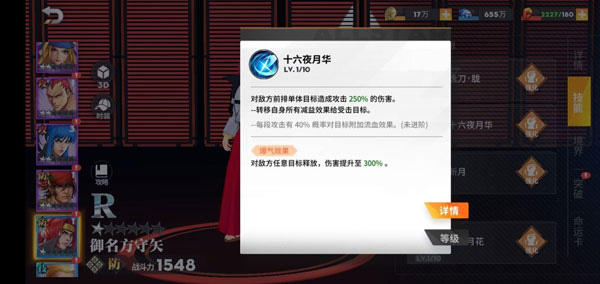 (2)奥义——十六夜月华:奥义技能与普攻的增益相同,但叠加的伤害有着较大的提升。值得一提的是,爆气状态下,可以对敌方任意目标释放奥义,这对于敌方脆皮后排是很大的威胁。