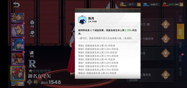 5、角色技能升级是养成角色的另一重要途径。只要有足够的资源就可对每个角色的普攻,奥义,天赋,援护四种技能进行升级,不同角色的技能优先级也有所不同,玩家可以根据角色自身情况选择所要提升的技能,部分技能在升级时,不仅仅加强技能伤害系数,还会提升技能特殊效果的触发概率!