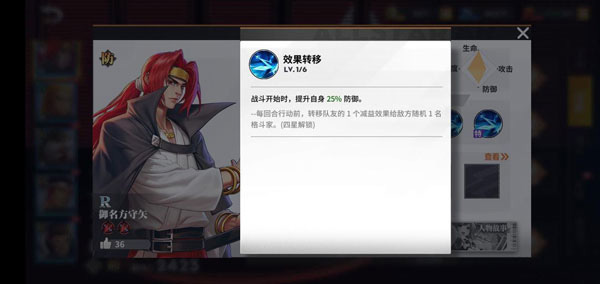(5)特质——效果转移:战斗开始提升一定防御力。