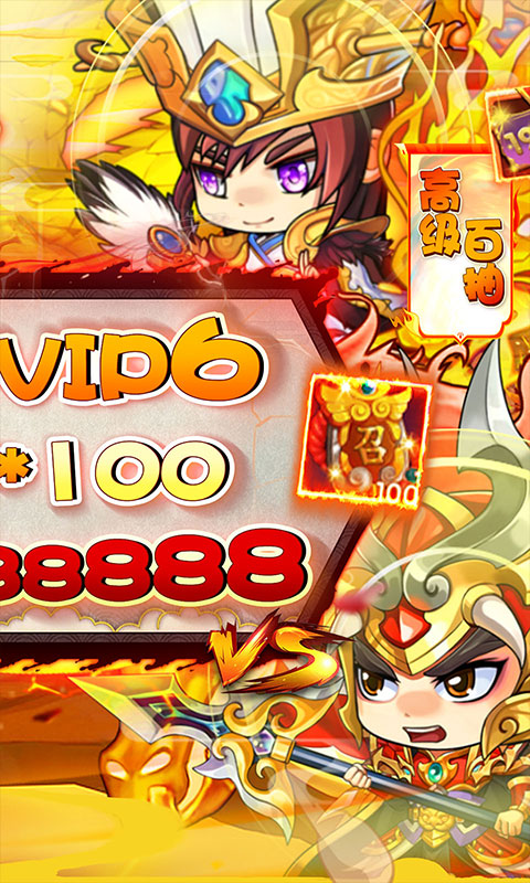 上线福利:vip6、元宝*888888、100召唤令、1000突破石、1000初级武将精华、800飞升丹、800时装精华(邮件获取)、银币*5000w