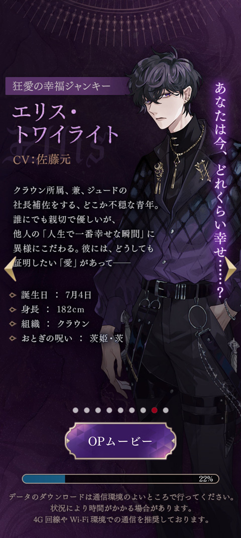 与一个充满邪恶的恶棍的爱是什么?如果你想知道的话,不妨试试美男恶徒在暗夜中的恋爱手游,这是一款全新的女性向剧情恋爱模拟游戏,也叫美男恶人、美恶男人、美男恶人暗夜中开始的恶之恋情,该游戏以19世纪的英国为背景,融合了恋爱元素和黑暗马杀鸡的玩法,玩家这里将进入神秘的虚拟世界,与各种美男恶人展开恶爱。同时游戏内设计了多名美男子,如自以为是,不道德的绝对君主:威廉雷克斯,一个随和的骗子和受欢迎的狐狸:Harrison Gray,以及吸引所有人的性感柴郡猫:利亚姆·埃文斯,他们外貌性格各异,并且每一位角色的配音都是日本当红的声优,绝对是视觉与听觉的双重盛宴。