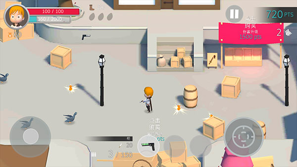 手枪可以按住连射,但是需要及时补充子弹,不然被鸽子追着打屁股就惨了。