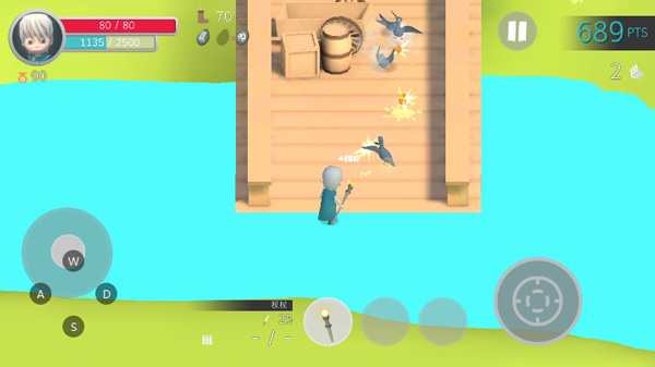 打死鸽子后会有几率产生一滩鸽子屎,踩上会持续掉血。还有可能得到金币、经验值和血瓶,血瓶可以一次回复二十点血,看起来不少了,但是面对蜂拥而来的鸽子大军,这点血量还是有点杯水车薪啊。