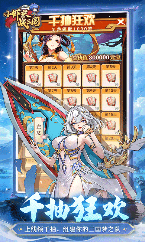 ps:小编所带来的小虾米战三国折扣版,为玩家带来超值的游戏体验,并且折扣版福利很多,玩家在游戏中创角即送橙将赵云,登录即可免费领取1000抽,七日登录还能在红将诸葛亮、关羽、吕布和貂蝉中任选其一。此外,元宝、十连招募等多重好礼登陆就送,武将养成轻松便捷,一键下野养成资源立刻返还,这些设定进一步降低了玩家的养成成本,让玩家能更轻松地提升战力,体验游戏乐趣,有需要的玩家可以在本站免费下载体验。