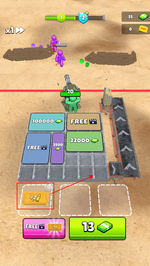 2、 合并装有武器的箱子,以升级您的塔枪军队,并为您的机枪获取更大的子弹;